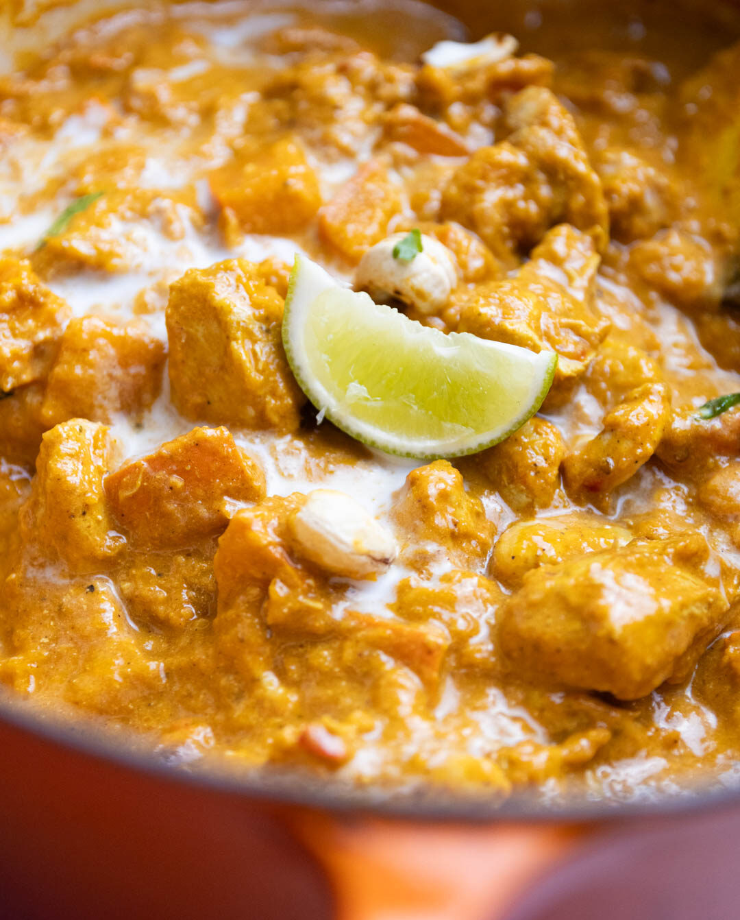 Nie ma nic lepszego niż cały garnek aromatycznego butter chicken na kilkudniowy meal prep. Butter chicken to indyjskie danie z delikatnym z maślanym kurczakiem. Tradycyjnie przygotowuje się je bez dodatku dyni, ale taki dodatek sprawia, że danie jest jeszcze bardziej odżywcze.