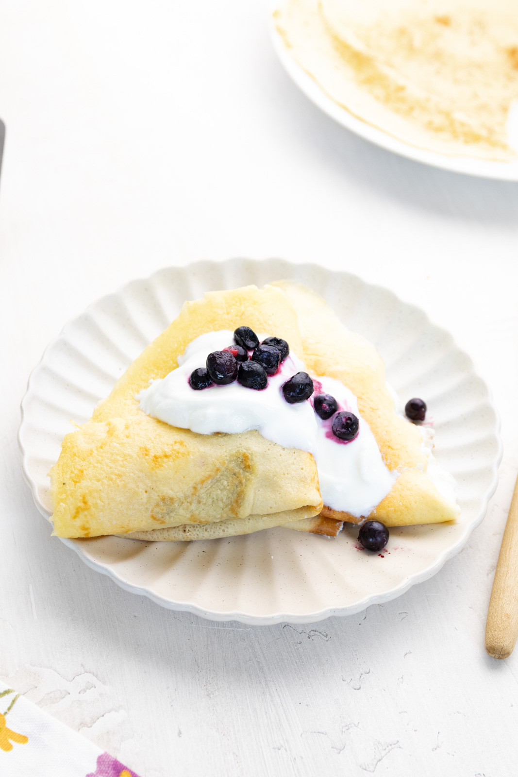 Ciasto jest banalne, po prostu blendujesz wszystkie składniki, stopniowo dodając roztopione masło, dzięki czemu wychodzi gładkie i elastyczne. Mąka kokosowa, białko jaj w proszku i odrobina gumy ksantanowej tworzą idealną, cienką i sprężystą strukturę. Białko jaj w proszku to tutaj sekret nadaje naleśnikom elastyczność i sprawia, że nie mają typowego „jajecznego” posmaku. Warto je kupić online i mieć pod ręką, to też świetne, dodatkowe źródło białka. Podawaj z kremowym twarożkiem i świeżymi owocami leśnymi albo niskowęglowodanowym dżemem są po prostu pyyyycha 😄